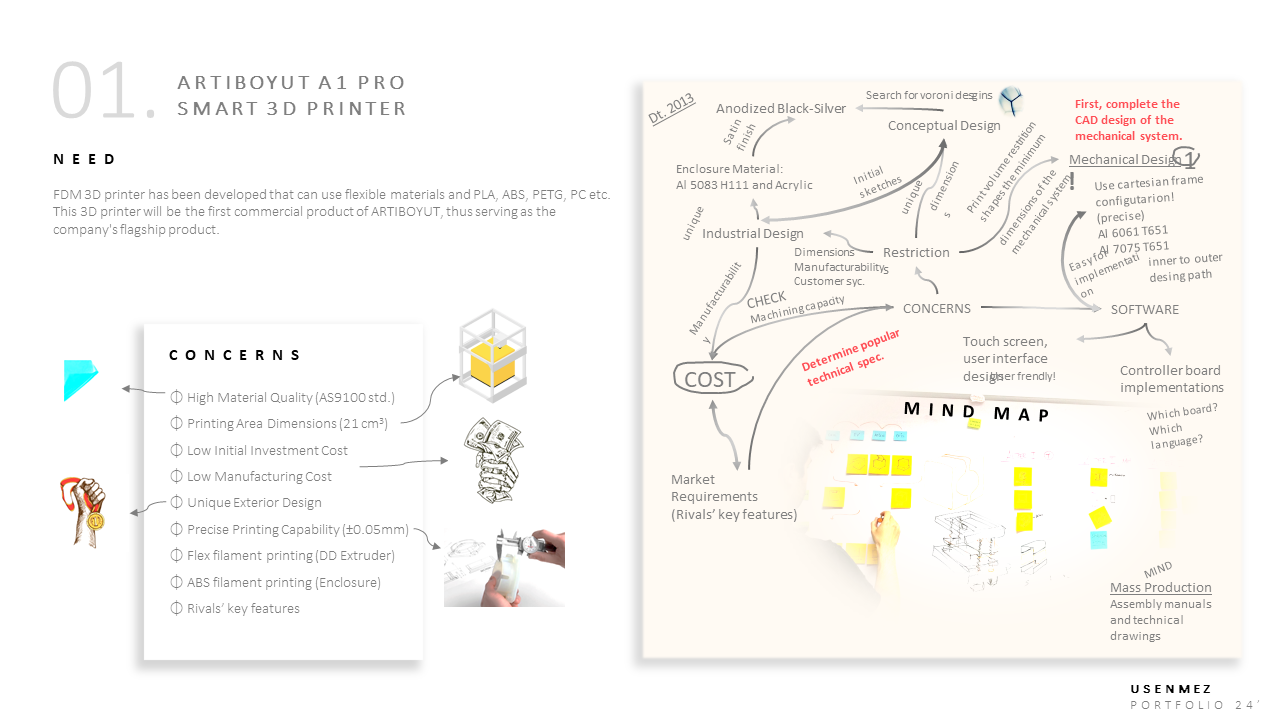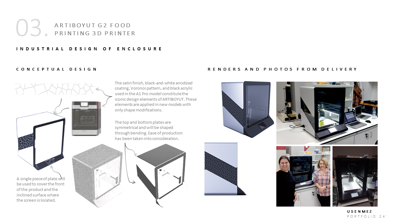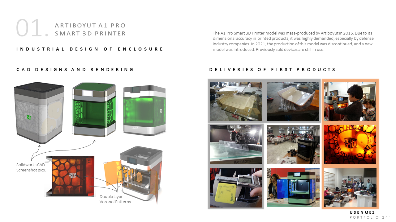 Müşteri Onaylı İterasyon & Üretim Dokümantasyonu – Onaylanan tasarım için teknik çizimler, üretim notları ve BOR listeleri hazırlanır; seri üretime hazır dokümantasyon teslim edilir. İstenmesi halinde, tam fonksiyonel ilk prototip ArtıBoyut bünyesinde veya iş ortaklarıyla birlikte üretilebilir.