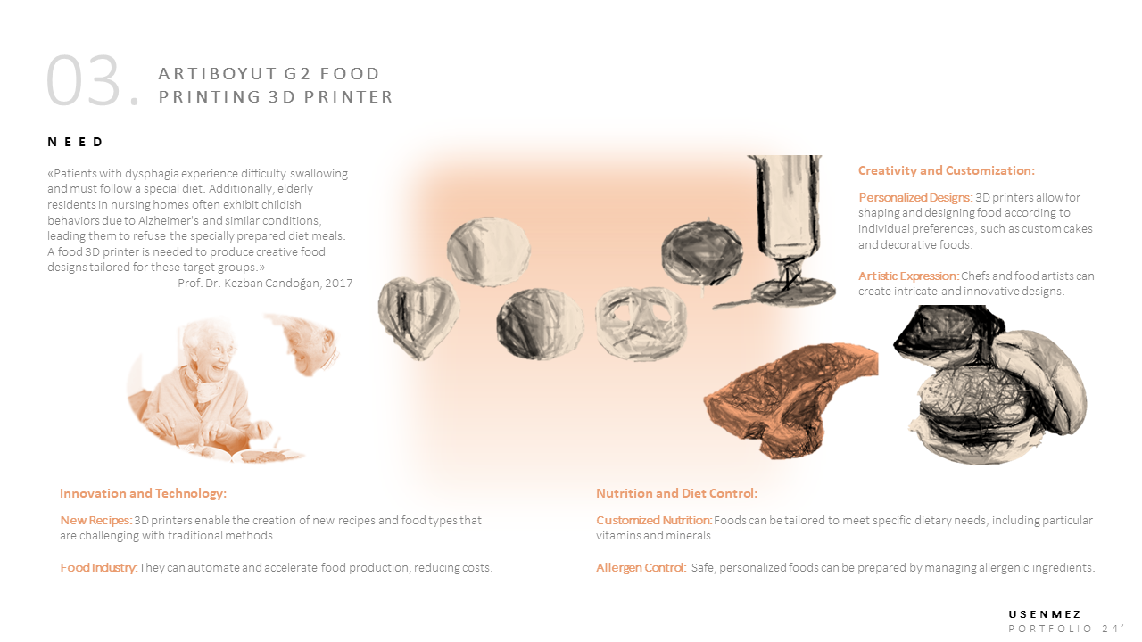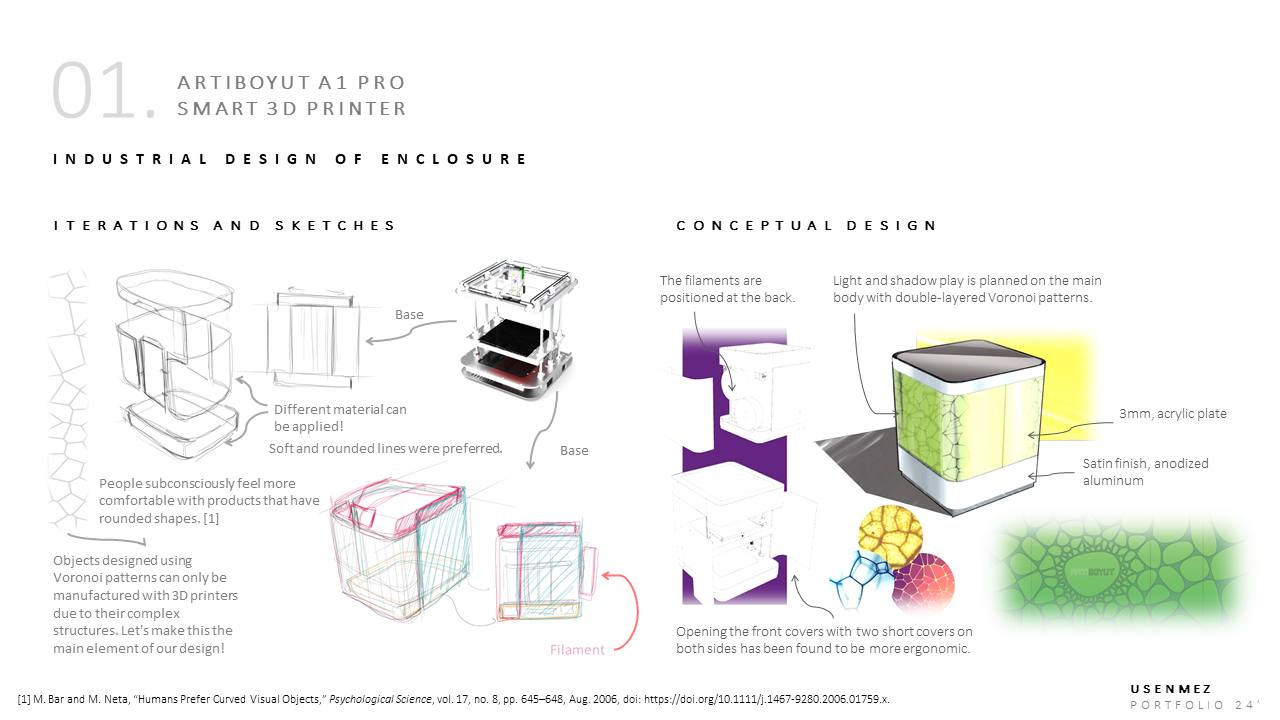 Portfolyo sayfalarında tamamlanan tasarım projelerinin aşamalar halinde hikâyelendirilmiş sunumlarına yer verilir.