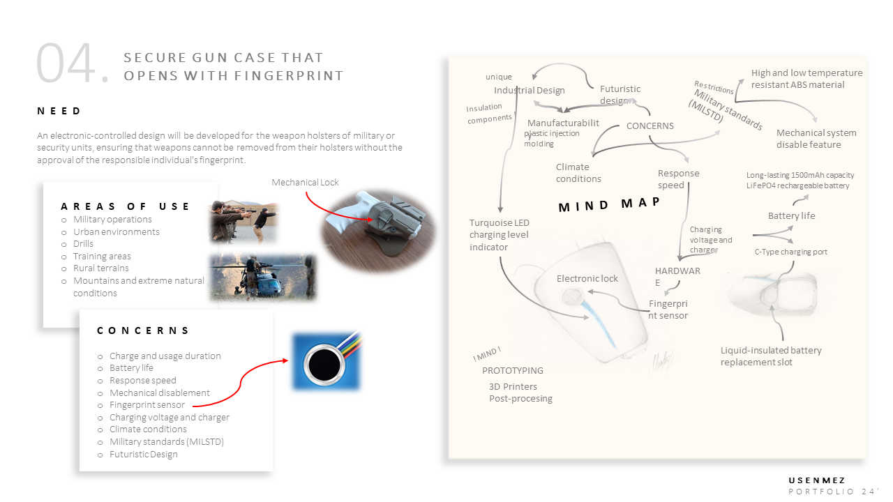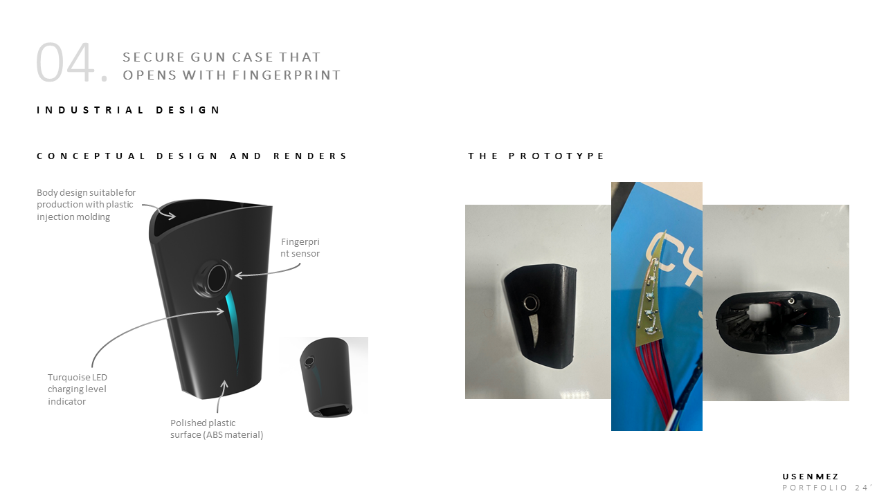 Parametrik 3B Modelleme & Render – Ergonomik ve mekanik modelleme yapılır; yüksek kaliteli ‘render’ görüntüler oluşturularak tasarımın hem sunum hem de pazarlama aşamasına uygunluğu doğrulanır. Endüstriyel tasarım ilkeleri ve mühendislik kabiliyetleri kullanılarak form ve fonksiyon dengesi sağlanır.